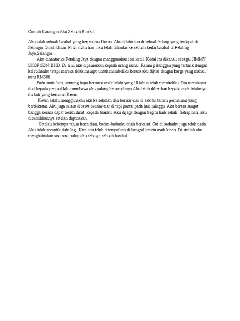 Contoh Karangan Aku Sebuah Basikal Pdf